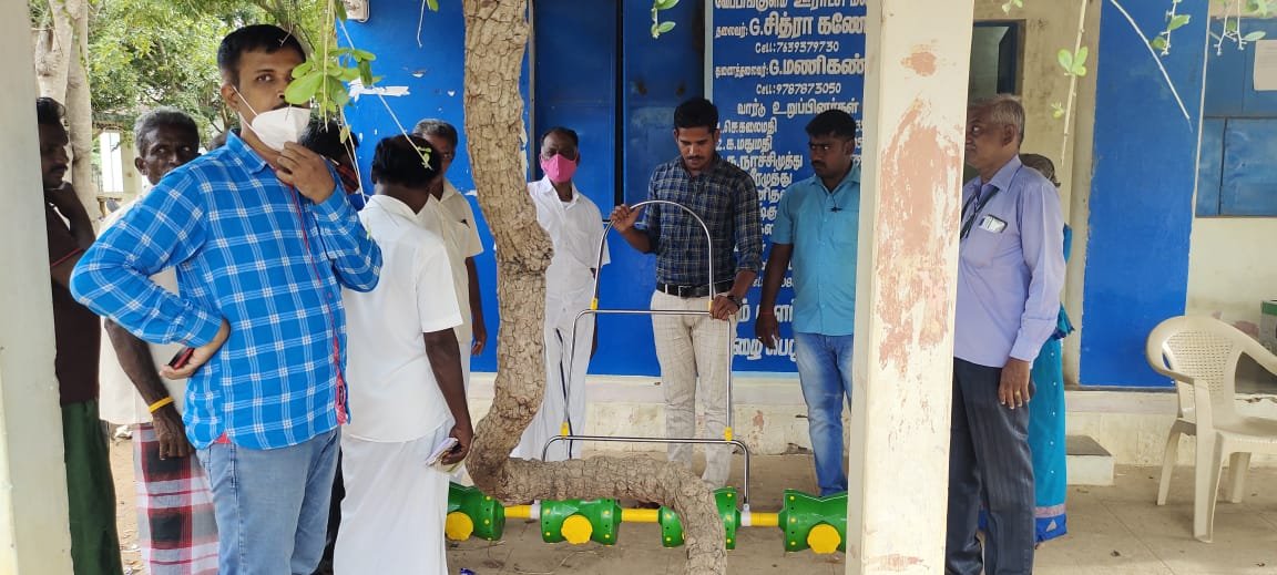 06.07.2021 அன்று வேப்பங்குளம் கிராமத்தில் விவசாயி காளிதாசுக்கு நெல் வரிசை இயந்திரம் வழங்கப்பட்ட நிகழ்வு