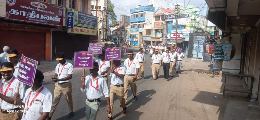 பொதுமக்களிடையே சுகாதாரத்தின் முக்கியத்துவத்தை வலியுறுத்தும் வகையில் பேரணி காரைக்குடி நகரின் பழைய பேருந்து நிலையத்தில் தொடங்கி நகரின் முக்கிய வீதிகள் வழியாக நடைபெற்றது.