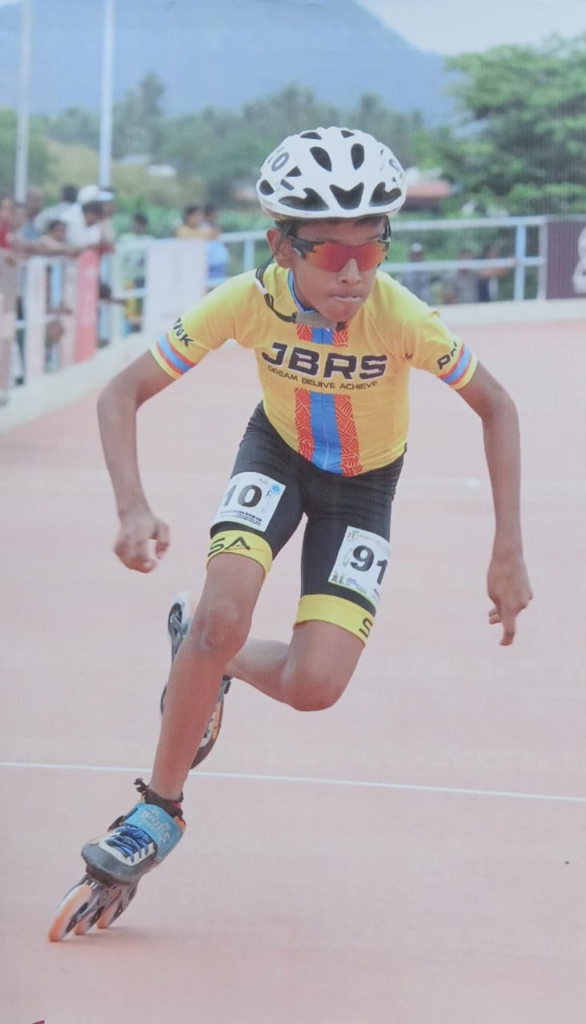 இதன் தொடர்ச்சியாக தேசிய அளவிலான போட்டிக்கு தகுதி பெற்று நவம்பர்-13 முதல் ‘ஹரியான-குருகிராம் — குளோபல் HSV பள்ளியில் நடைபெற்ற 11 வயதிற்குட்பட்டோருக்கான சிபிஎஸ்சி(CBSE) தேசிய ஸ்கேட்டிங் சாம்பியன்ஷிப் போட்டியில் வெற்றி பெற்று தங்கப்பதக்கம் பெற்றார். SGFI- தேசிய போட்டியில் பங்கேற்கவும் தகுதி பெற்றுள்ளார். (SGFI-இந்தியாவின் பள்ளி விளையாட்டு கூட்டமைப்பு).